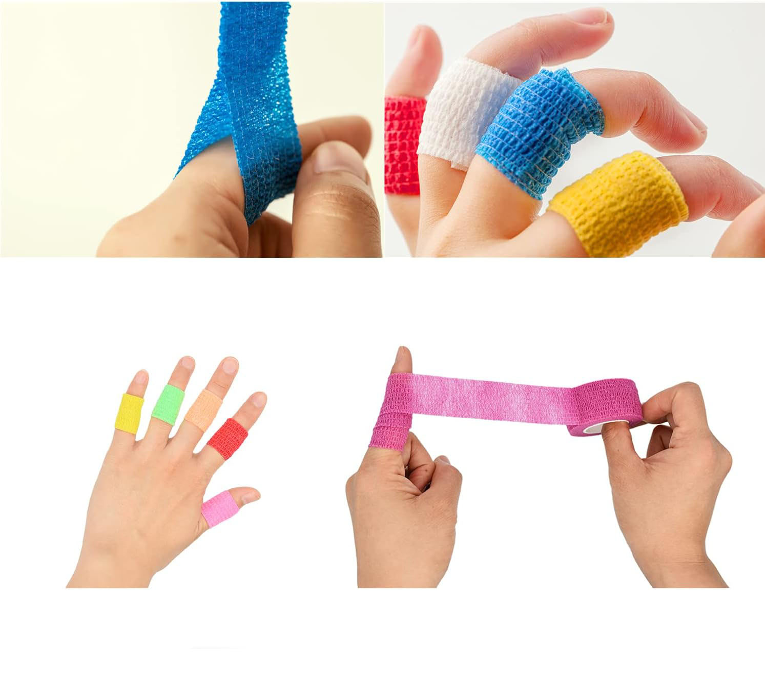 1. Pinahusay na Flexibility: Ginawa nang may elasticity, ang Cohesive Finger Bandage ay walang putol na umaayon sa mga contour ng daliri, na tinitiyak ang isang secure at kumportableng fit sa buong araw. Ang mga bendahe ay nagpapanatili ng kanilang integridad kahit na sa panahon ng paggalaw, na nagbibigay ng proteksyon.
